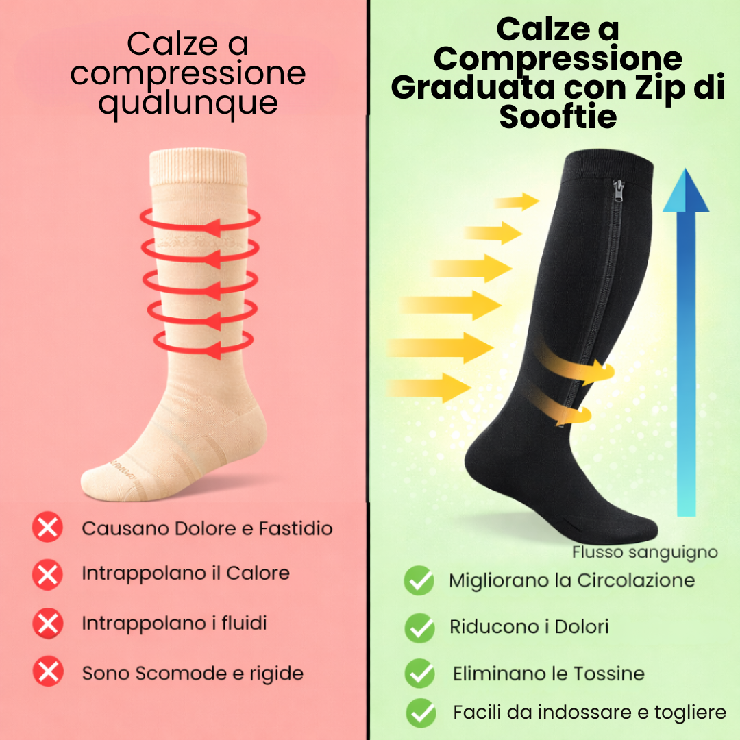 Le Calze Sooftie Zip aiutano:- ✓ Persone con gambe gonfie, pesanti o stanche